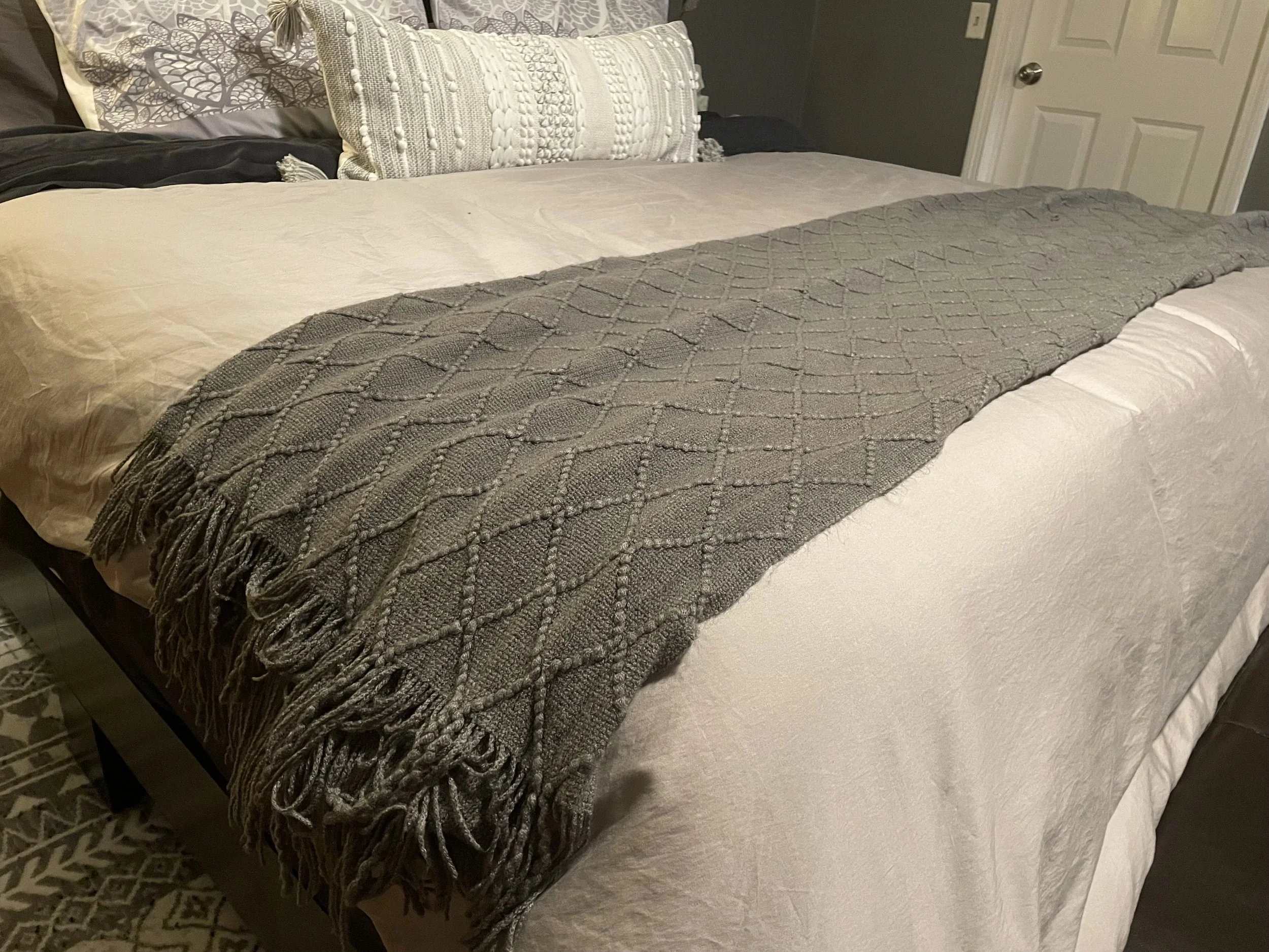 This throw blanket is SO super soft I just melt into it. I especially love it on a cold Saturday morning with my coffee and a good book.